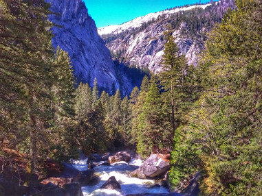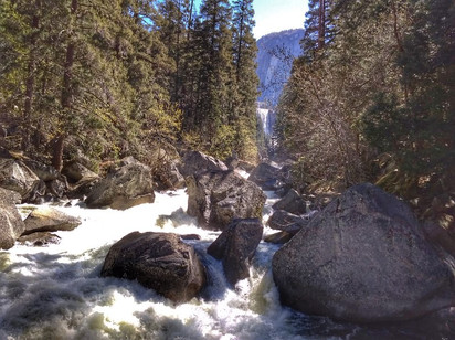 Ráno nás budí alarm nařízený na 6:30. Snídáme a hurá do Yosemite. Špatná zpráva je, že kvůli letošní krutopřísné zimě je ještě hodně treků uzavřených. Chtěli jsme jít Panorama Trail, který, jak už název napovídá, vede kolem spousty nádherných výhledů. Ale holt se musíme přizpůsobit podmínkám. Jako první tedy jdeme do Visitor Centra pro mapu a rady. Tam nám Yosemitský Ranger doporučuje jednodenní trek k Nevadskému Vodopádu. V Yosemitech vás ke každému začátku treku pohodlně doveze zadarmo autobus. V buse nás vítá paní řidička, která nám cestou s láskou představuje všechny krásky a krasavce parku. Míjíme dech beroucí vodopády a zrak nám přechází z různotvarých vrcholků hor. Paní řidička Rose nás vtipnou formou poučuje o tom, jak se máme chovat v přírodě a do toho nám ještě zpívá, ten den je hned veselejší! Ale nálada klesá s nástupem asi 25 dětí do už tak plného autobusu. Když konečně vystupujeme říkáme si, že v létě to tu musí být šílený. Slunce začíná pražit. Neboj mami, aplikujeme opalovací krém faktor 50! A vyrážíme na cestu. A s námi dalších asi 1000 500 900 dětí, co jsou tady na škole v přírodě. Na rozcestí raději volíme delší variantu trasy, což nás odděluje od davů. Svačíme s výhledem na Half Dome, oblou horu vysokou 2693 metrů a čekáme, kdy nám na rameno zaklepe medvěd. Sprej na medvědy a rolničky jsme nechali klasicky v autě. Pokračujeme dál a poprvé vidíme Nevada Fall, cesta se pak klikatí vzhůru a my stoupáme až k místu kde se řeka mění ve vodopád. Vody teče hojně a vodopád je ve své největší kráse. A ty panorámata okolo, prostě nádhera! Cestou dolů jdeme ještě přes jeden vodopád. A právě hned vedle Vernal Fall vede trek který se jmenuje Mist (mlha) trail. Trek je tak blízko padající vody, že je v podstatě permanentně v oblaku mikro kapiček stříkajících od vodopádu. Jdeme dolů a potkáváme ty, co jdou opačnou cestou nahoru. Všichni jsou jak zmoklý slepice. My volíme taktiku nahoře bez a zahajujeme sestup. Bylo to boží! Do teď na to vzpomínáme jako na highlight výletu. Jen do teď nechápeme proč se na takový trek vydávájí paničky v bílých teniskach, dědové o holi nebo businessmani v košilkách. Ti, na nás koukají jak na blázny, páč jsme do půl těla a durch...ale brzy jim to dojde!!! Jsme uťapaný, ale jdeme ještě jeden trek k Mirror Lakes. Pak nasedáme do auta zastavujeme u El Capitana, což je horolezecká Mekka a přemýšlíme jak dlouho asi trvá takového "Kapitána" zdolat. Při samotném odjezdu z parku vidíme spoustu lidí na kraji cesty. Vypadají jako by na něco koukali a většina má foťáky v ruce. Pepča si dělá srandu: "tam je určitě medvěd!" Já se směju a říkám si: "to určitě!" Ale on tam fakt je!!! Takový menší méďa si tam hraje na kladách a o kousek dál stojí davy a koukají na něj! Yosemity jsou krásným místem a my jsme si to moc užili. Jen to malinko zavání komercí. Tak nějak to ztrácí pocit divočiny. Všude vás doveze autobus, cestou si dokonce můžete dát Starbucks kávu nebo si zajít do restaurace. K dispozici je ubytování všeho druhu, od obyčejných kempů, přes spešl stany s postelí až po luxusní Lodge. My jsme se vrátili na náš spotík do lesíčka a spali jako mimina.